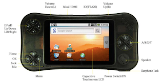 My ODROID arrived in the mail yesterday, direct from South Korea. It's clearly prototype hardware; the thing is made out of light plastic and looks fairly cheap. There's a very strange power button that doubles as a hold switch and screen orientation switch, and I keep accidentally hitting the capacitive volume controls where I expect shoulder buttons to be. The directional pad is actually pretty bad compared to what you'd find on gaming hardware like the Nintendo DS or Playstation Portable, but it's better than your average phone. The thing can talk to adb, it came with an SD card already installed, and supporting the A/B/X/Y buttons is trivially easy (they just map to regular keyboard events).